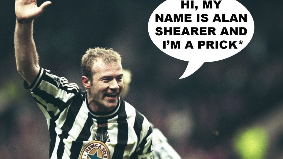 For all I know, Alan Shearer is a very nice man. I’ve never met him.  He may be a pillar of his community in Newcastle, he may have given time and money to charity, built homes for the homeless, he may be the most approachable man in all the land. But to me, he’s a prick.
