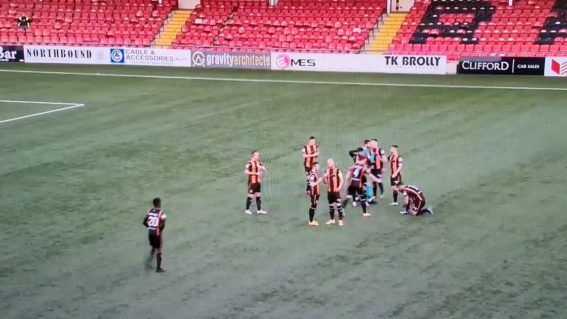 Trying to concentrate on the game when Gareth McGlynn is making absolutely zero effort to be unbiased was very, very difficult. It felt like an authentic away game where you’ve sat in the home section next to someone who will not stop talking the whole night. He full on cheered the goal too. I have no problem with him cheering but at least pull the microphone away from your face when you do it!